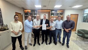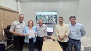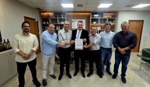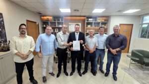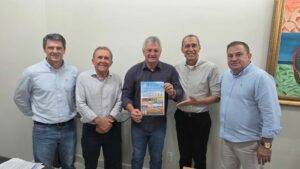 Os representantes do Show Safra Mato Grosso 2026, o presidente Joci Piccini, o diretor executivo, Rodrigo Pasquali, além do prefeito de Lucas do Rio Verde, Miguel Vaz e o presidente da Câmara de vereadores, Airton Callai, realizaram nessa quarta-feira (21), o convite oficial às principais lideranças políticas do Estado, para participarem da maior feira do agronegócio de MT. Eles reforçaram a importância da feira para o fortalecimento do agronegócio mato-grossense.